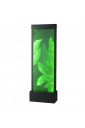 Avec sa base en aluminium peint en noir et son intérieur en verre transparent, la fontaine "Bananier 180" est à disposer en intérieur. Ce rideau d'eau très calme s'illumine de couleurs variant au fil de l'eau, à l'aide de sa télécommande et de LED RVB. Les motifs qui ont été sablé sur le verre, sont mis en relief par le jeu de lumière.