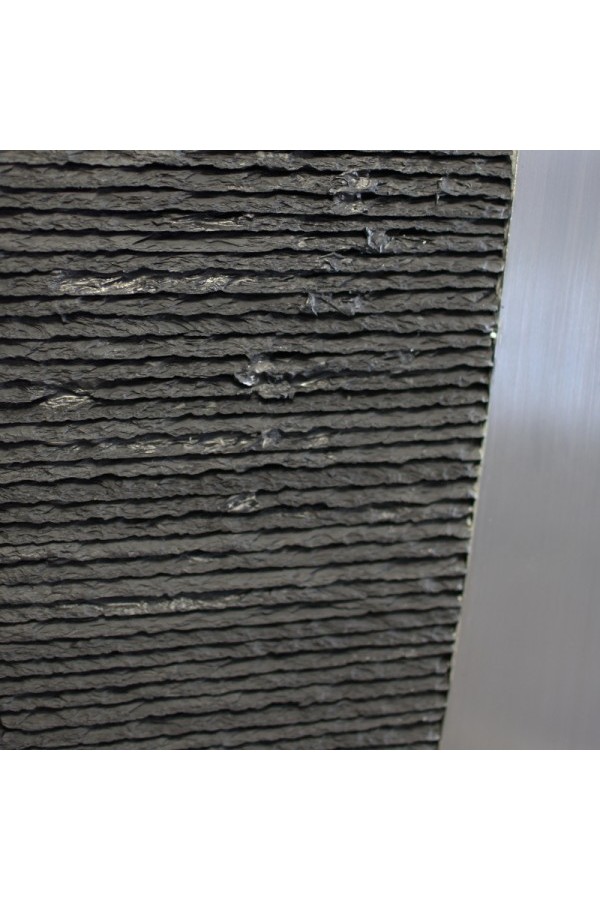 Impressionnante, la fontaine "Grande Flamme Inox" est une grande fontaine de jardin ou d'intérieur, en pierre naturelle de schiste noir. Finement striée en lamelles, cette pierre produit un mouvement d'eau calme et apaisant très naturel. Elle est associée à l'inox brossé, pour un design très contemporain et un contraste de matériaux très esthétique. L'inox reflète l'éclairage de la fontaine, qui lui donne un tout autre aspect à la nuit tombée.