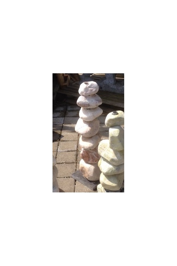 La colonne de galets empilés, se compose d'un socle, d'une tige en métal et de galets percés empilés sur celle-ci. Entièrement démontable, vous pouvez assembler les galets comme bon vous semble. Idéal pour décorer votre jardin, vous pouvez également l'utiliser comme fontaine. En effet, la colonne creuse peut servir à acheminer l'eau jusqu'au sommet de la colonne afin qu'elle s'écoule ensuite le long des galets.